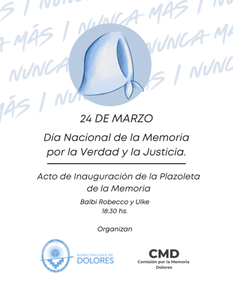 En el marco de una nueva jornada de memoria colectiva, desde la Comisión por la Memoria de Dolores invitamos a la comunidad a participar de las actividades organizadas para reflexionar, recordar y reafirmar nuestro compromiso con la democracia y los derechos humanos.