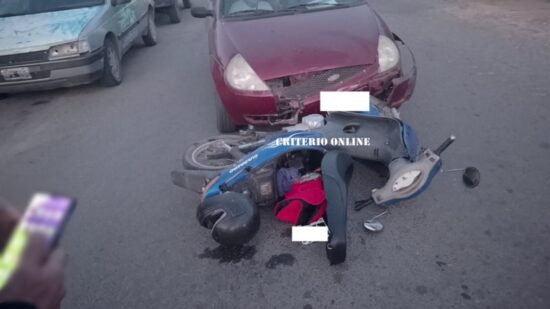 En la intersección de Montes y Espora se registró un accidente de tránsito que involucró a un automóvil Ford Ka, conducido por una mujer, y una motocicleta Guerrero Trip, manejada por una joven.