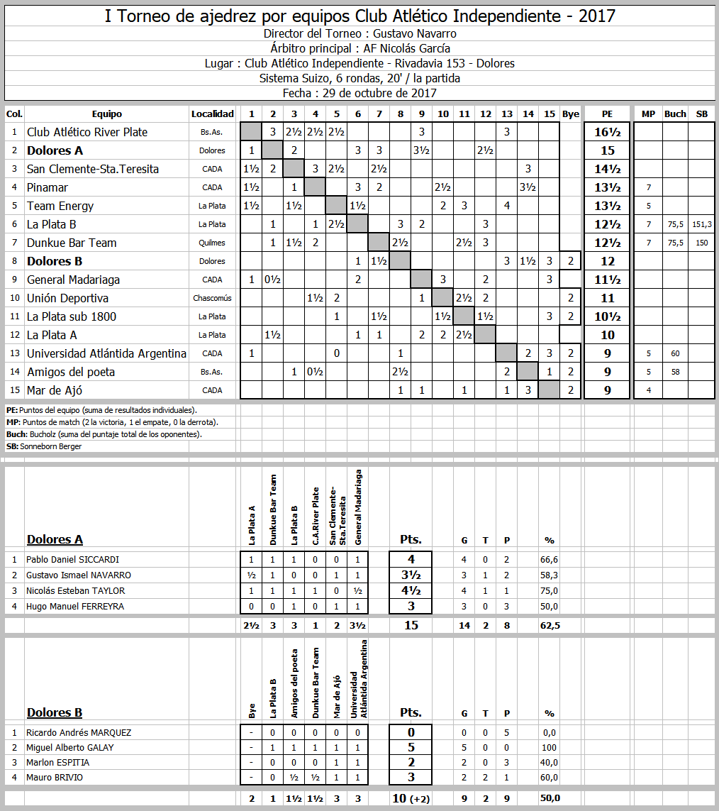 Se vivió en la tarde del domingo una gran fiesta para el ajedrez local, con la realización de un importante certamen por equipos en la sede del Club Atlético Independiente, el que contó con la profusa participación de 15 equipos con 62 jugadores, de toda la región, disfrutándose también de la intervención de dos teams de C.A.B.A. y cuatro de La Plata.