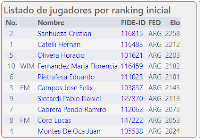 Se impuso en la justa con cierta comodidad Hernán Catelli quien logró 8 puntos, superando por dos unidades al segundo clasificado Ramiro Cabrera Pando. Demostrando la dureza de la prueba, vemos que la WIM María Florencia Fernández ocupó la 6ª colocación y los FM José Félix Campos y Lucas Coro, la 7ª y la 8ª.