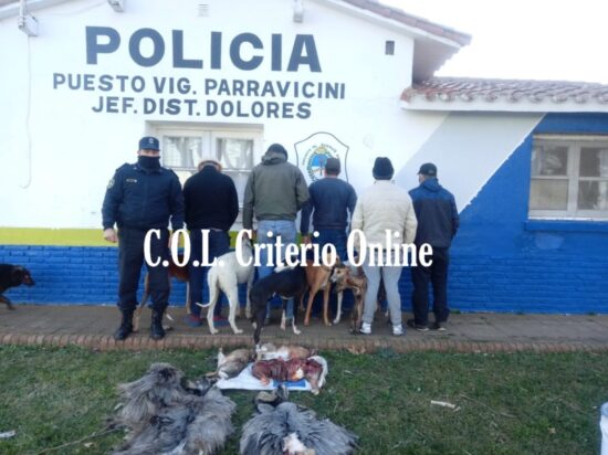 Fueron detectados por personal policial del Puesto de vigilancia de Parravicini perteneciente a la Estación de Policía Departamental Dolores, con 10 perros de raza galgo, cuartos de avestruz faenados, liebres y ponchos de plumas de avestruz.