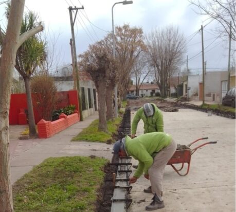Personal de la Secretaría de Obras Públicas está construyendo el cordón cuneta de calle Gatti entre Ulke y Rípodas, que se encontraba deteriorado y no permitía un correcto escurrimiento del agua.