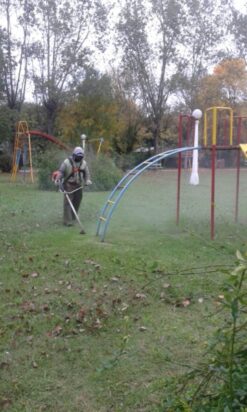 Personal de la Dirección de Espacios Verdes realizó cortes de pasto en plazas, veredas, Jardín de Infantes, Escuela Nº 18 y accesos de Sevigné.