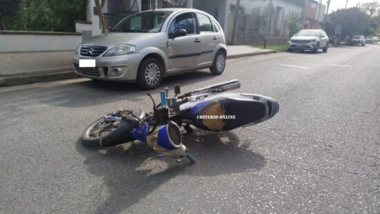 Como consecuencia del impacto, la conductora de la moto debió ser asistida y trasladada al nosocomio local para su atención.
