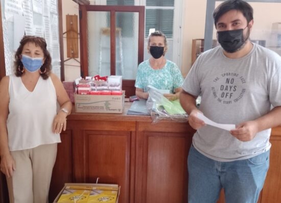 La Secretaria de Educación María Ester Larregle y la Presidente del Consejo Escolar Laura Clavero, hicieron entre de material didáctico a Horacio Juárez, destinado al Cens 452.