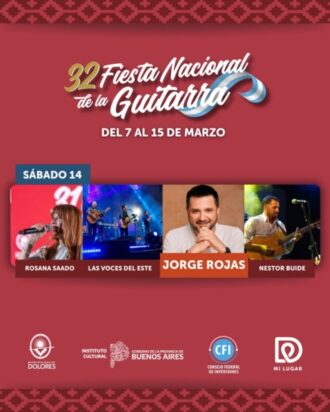 Dolores se prepara para vivir una noche inolvidable con el gran cierre de la 32° edición de la Fiesta Nacional de la Guitarra. Luego de varias jornadas colmadas de música, tradición y encuentros, el festival llega a su última noche con una programación artística de primer nivel.