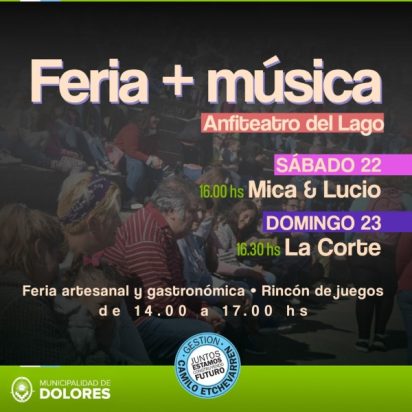 El sábado 22 y domingo 23 de abril, en el Anfiteatro del Lago, continúa el ciclo Feria+Música, que tiene como objetivo brindar el espacio a músicos y artistas dolorenses.