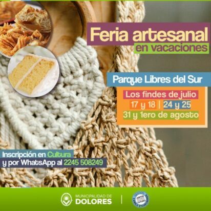 Desde la Secretaría de Cultura se informa que se llevará a cabo en el Parque Libres del Sur una feria artesanal en vacaciones. Los días en que se efectuará son los fines de semana de julio 17, 18, 24, 25 y 31 y el 1º de agosto.