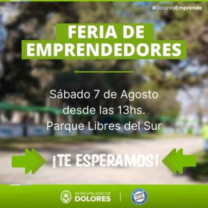 La Secretaría de Producción de la Municipalidad de Dolores informa, que el sábado 7 de agosto a partir de las 13.00 horas, habrá una feria de emprendedores en el Parque Libres del Sur.