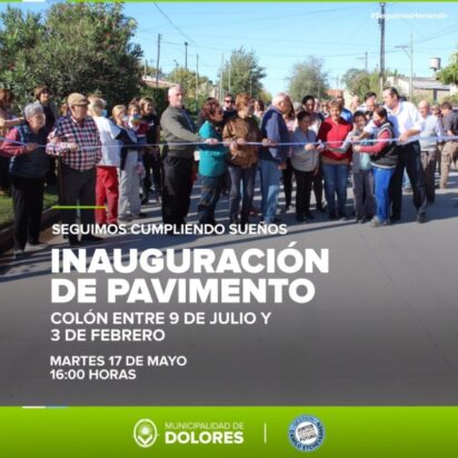 El martes 17 de mayo a las 16.00 horas, el Intendente Camilo Etchevarren, inaugurará el pavimento de calle Colón entre 9 de Julio y 3 de Febrero.