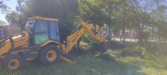 Aprovechando las buenas condiciones climáticas, personal de la Secretaría de Obras Públicas efectuó limpieza de desagües en el barrio Norte a la altura de la Estación de Trenes.