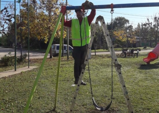 Personal de la Dirección de Espacios Verdes continúa con el mantenimiento de juegos para niños en las Plazas Martín Fierro, Negri y Belgrano. Tareas que se realizan dentro del Programa Dolores Ciudad Verde que lleva adelante el Intendente Camilo Etchevarren.