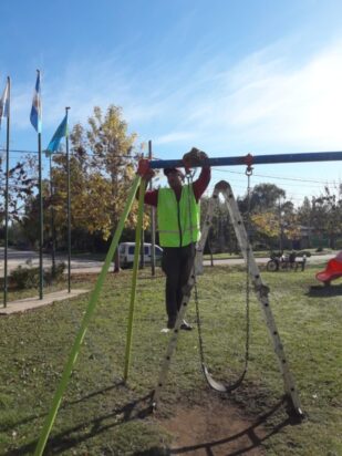 Personal de Espacios Verdes efectuó trabajos de pintura y mantenimiento de juegos en diferentes Plazas y sectores de gimnasios a cielo abierto. Tareas que se realizan dentro del Programa Dolores Ciudad Verde que lleva adelante el Intendente Camilo Etchevarren.