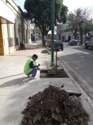Personal de Espacios Verdes comenzó con la realización de cazuelas para la forestación de la zona céntrica, en la cual la semana próxima se comenzará con la colocación de jacaranda, entre algunas de las variedades que se plantarán.