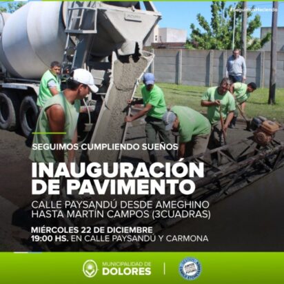 El Intendente Camilo Etchevarren informó que el miércoles 22 de diciembre quedarán inauguradas tres cuadras de pavimento, por calle Paysandú desde Ameghino hasta Martín Campos.