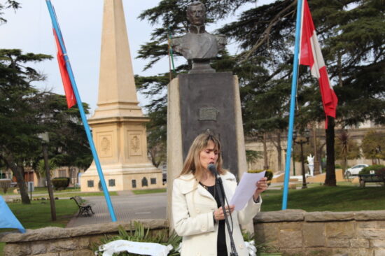 Se escucharon palabras de la Directora de la Escuela Nº10 General San Martín, Profesora Laura Moltoni, que dijo “a partir de su célebre figura y heroico proceder, se constituye esa gran narración que nos explica como país. Por eso, rememorar su vida a partir de un nuevo aniversario de su muerte es recordar ese relato que escuchamos en los actos escolares de nuestra infancia, esa gran narración que nos conformó como comunidad y que debemos pensar y reconsiderar en nuestro camino hacia una patria justa, libre y soberana. Expuso su pensamiento: Serás lo que debas ser, o serás nada. Cruzó los Andes con su ejército para llevar a cabo su hazaña. Así como el General San Martin necesito a sus granaderos y a sus soldados, nuestra Patria necesita de cada uno de nosotros. Que la imagen del Padre de la Patria, sea un modelo a imitar por todos los argentinos, para hacer de nuestra Patria un lugar mejor, recordando que si hay victoria en vencer al enemigo, la hay mayor cuando el hombre se vence a sí mismo”.^