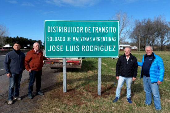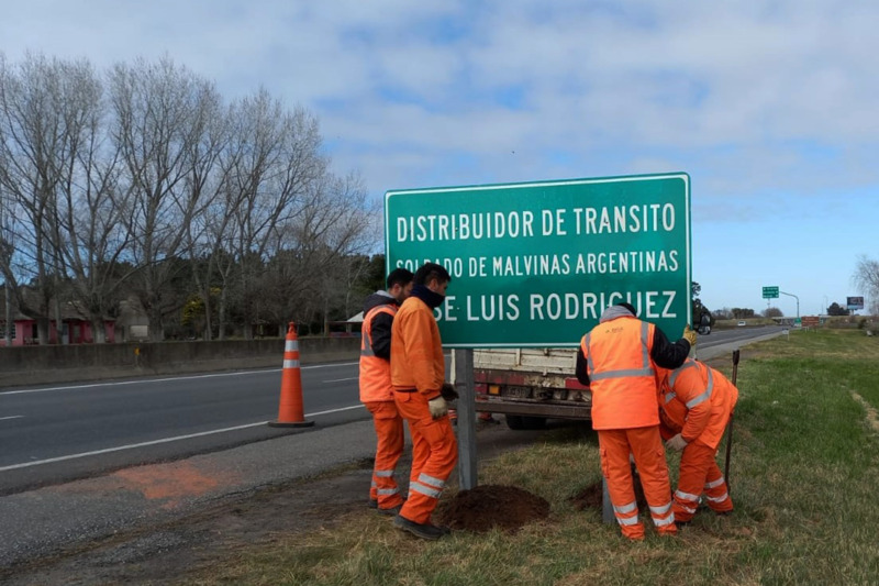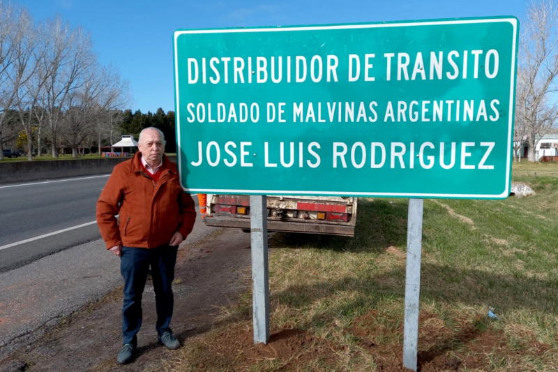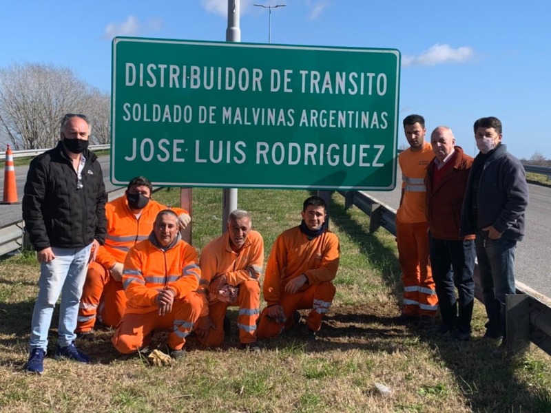 Atento a ello, personal de la empresa AUBASA colocó el cartel indicador con el nombre de “Soldado de Malvinas Argentinas, José Luis Rodríguez” en el distribuidor de tránsito ubicado en Autovía 2 y ruta 63 en Dolores.