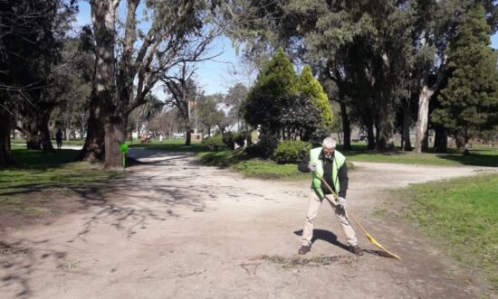 Personal de la Dirección de Espacios Verdes realizó limpieza y cepillado de calles en el Parque Libres Del Sur.