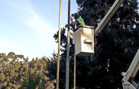Personal de la Dirección de Espacios Verdes hizo mantenimiento de mástiles en Plaza Irigoyen, con esta tarea se unifican los mismos colores de todos los mástiles y monumentos, teniendo como referencia la plaza Castelli.