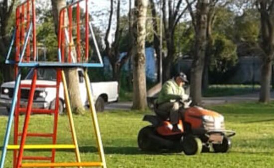 Con máquinas y personal de la Dirección de Espacios Verdes se realizaron cortes de pasto en las Plazas Mabel Aparicio y la que se encuentra en el sector de las colonias en Sevigné.